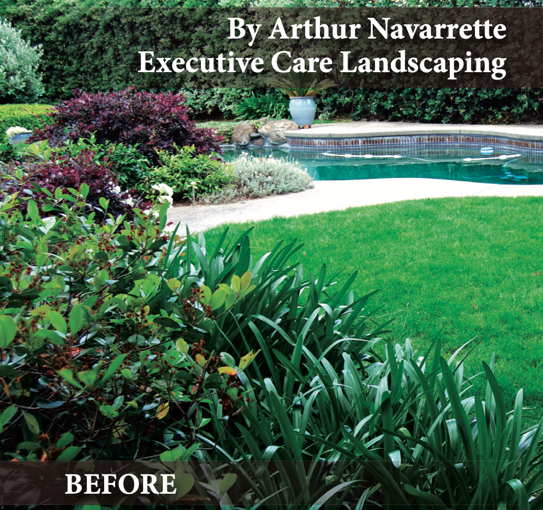 Finally, the hardscape. You know a property is dated when you see exposed aggregate for the hardscape. In the second picture, you see orange marker paint - I used that to re-design the hardscape for my concrete friend who’s viewed. We picked a stamp pattern and color not often used. I have not seen this pattern but would like to use it when the job requires demo-ing out existing con- crete. My reason for showing you this job is, as with other jobs, that beauty and usability can both be created, and it’s important. The backyard is where we entertain, enjoy our family, and relax. It is important to find a landscaper that shares and adds value to your vision, even if you must wait. Paying a little more for this assurance is well worth it. Sales and deals and lowest bids only mean shortcuts for an investment that will cost you more in the long run if not done correctly, and it will more than pay for itself over the years with enjoyment and use if correctly done. So, as we start the season please keep this advice in mind.
