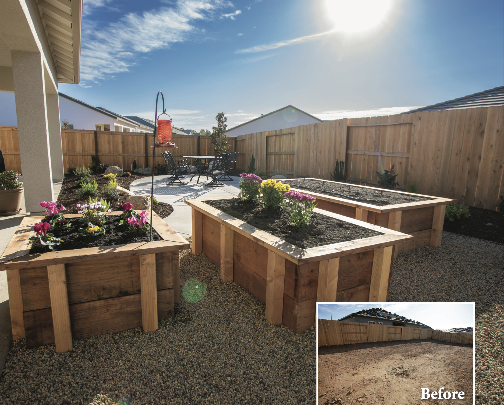 beds. Normally, we put planter beds to one side of the yard or